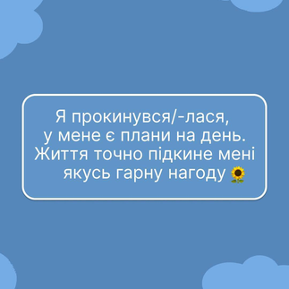 В будь-якому настрої, самопочутті, при будь-якій погоді чи новинах — будеш знаходити час підбадьорити себе під час ранкової рутини чи за кавою?